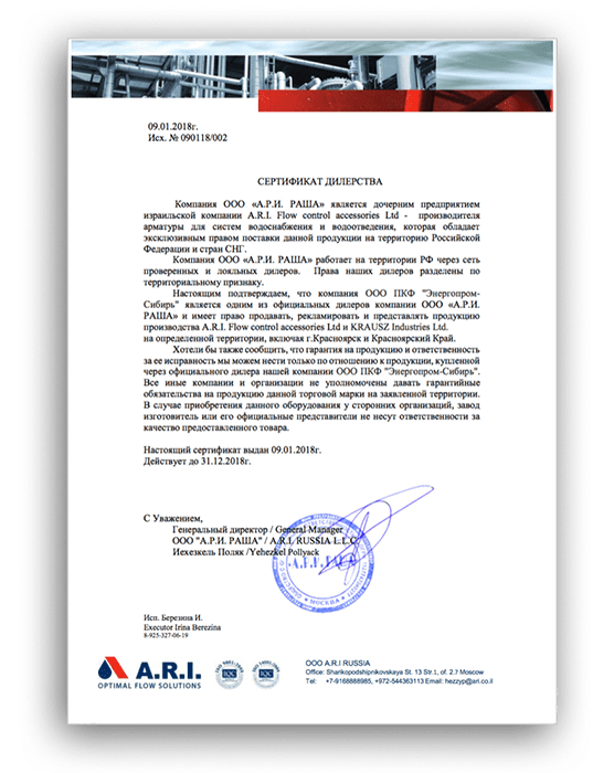 Вы можете просто позвонить нам по телефонам 8 (391) 249-11-46, 258-78-53 и вслух сообщить о потребности. Мы Вам сразу ответим или попросим совсем небольшое время для уточнения. В любом случае, Вы получите наиболее оперативный и компетентный ответ, с реальными ценами и сроками поставки в виде счета или коммерческого предложения.Оплаченный товар мы привезем к Вам на склад в Красноярске бесплатно или отправим в Ваш город выбранной Вами транспортной компанией. Если Вам удобно получить товар у нас на складе, сообщите нам и мы Вас будем ждать по адресу Красноярск, ул. Северное шоссе 9Ж, стр. 6, офис 21.Если Вы еще не определились, Вы можете полистать наш каталог, скачать технические и опросные листы на оборудование. Если Вы проектировщик или снабженец, мы будем рады встречи с Вами. Всё обсудим. Сертификат авторизованного дилераНаиопытнейший и самый надёжный импортер арматуры AVKСантех-Сервис СибирьСертификат официального дилераРоссийское представительство мировых лидеров в разработке и производстве воздушных клапанов A.R.I. valves (Израиль), и гидравлических ремонтных хомутов - Krausz (Израиль).А.Р.И. РАШАСертификат полномочийНепререкаемы российский авторитет в производстве насосных станций. Ответственный производитель качественного оборудования.Насосный завод "Взлет" Сотни новостроек За 16 лет "Энергопром-Сибирь" было поставлены тысячи единиц оборудования для вновь возводимых объектов. За всё время мы не получили ни одного замечания по работе техники. Не было выявлено ни единого случая брака.Новые жилые районы, школы, детские сады, торговые центры и многие другие объектыМагистральные трубопроводы Оснащены десятками большеразмерных поворотных затворов, задвижек, соединительных муфт, поставленных нами. Обеспечивают надежную и безаварийную работу самых значимых инфраструктурных объектов. Некоторые образцы столь масштабной техники были использованы в России впервые. До 1600 мм в диаметре.Спортивные сооруженияНачав свою историю 16 лет назад с поставки оборудования на сооружения горнолыжного комплеса "Бобровый Лог", мы продолжаем добрую традицию.Объекты зимней Универсиады-2019 не обходятся без надежного оборудования, поставленного нашей компаниейНасосные станции. От Заполярья до южных районов, по многоим городам края работают наши насосы и насосные станции.